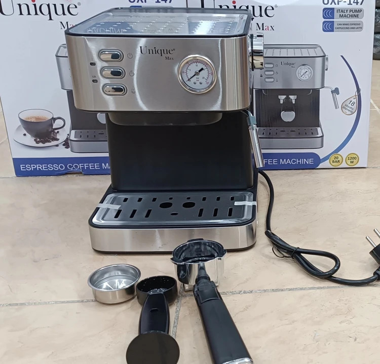 ✔اسپرسوساز حرفه ای آمپر دار Unique 🔹️مدل.uxp_147بدنه تمام استیل ضد زنگ 🔹️قدرت بخار 20بار 🔹1200وات 🔹دارای امپر 🔹حجم مخزن;1/5لیتر 🔹 ،دارای تک شات 2 شات 🔹️دارای نازل بخار و سینی ضد چکه 🔹️خامه دهی عالی،کیفیت تضمینی 🔹️تهیه،اسپرسو،ماکیاتو،لاته،کاپوچینو