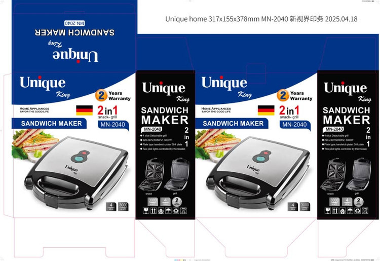 ساندویچ ساز دو کاره یونیک مدل MN-2040