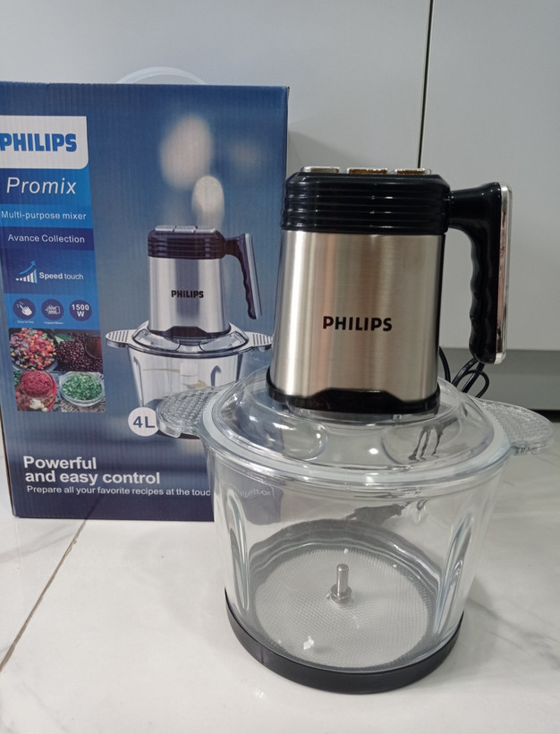 خردکن 4 لیتر دوکاسه فیلیپس 6 تیغه طلایی +6 تیغه استیل به همراه سیر پوست کن سه سرعته مدل پرومیکس