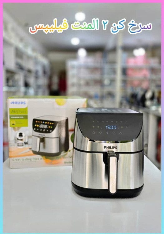سرخ کن هواپز 15 لیتری لمسی دو ۲ المنت بدون روغن 3000 وات صفحه نمایش رنگی.سبدجداشونده .صفحه تخت فیلیپس مدل PHILIPS PH- 1897
