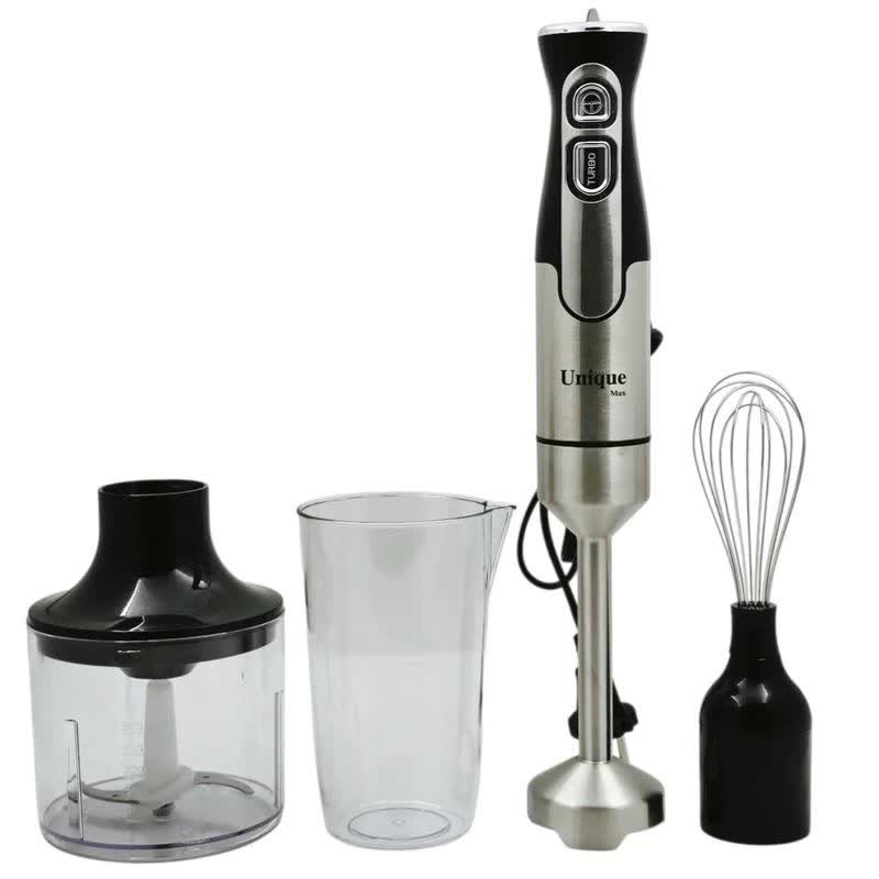 گوشتکوب 4 کاره یونیک 😍 موتور قدرتمند 1000 وات دارای ولوم تنظیم سرعت دور کند و تند تعداد تیغه ها : 4 لبه جنس بدنه : استیل جنس پایه گوشت کوب : استیل عملکرد 4 کاره شامل : گوشت کوب ، خردکن ، همزن و مخلوط کن ترکیب قدرت، طراحی شیک و عملکرد همهجانبه! 🥣 همزن، خردکن، گوشتکوب و لیوان مدرج – همه در یک دستگاه موتور پرقدرت، تیغههای فولادی ضدزنگ و کاربری آسان، انتخابی بیرقیب برای هر آشپز حرفهای یا خانگی✅